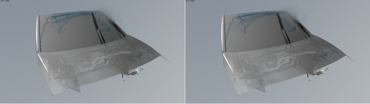 Figure 6: Visualization of wiper simulations performed on CPU (left) and GPU (right)