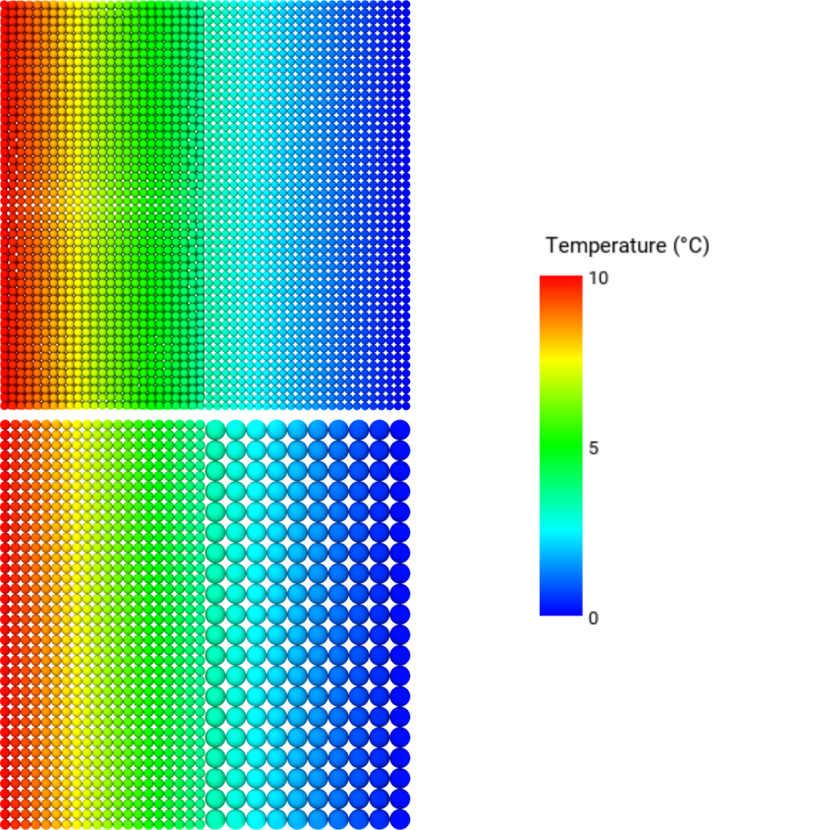 The next step in terms of complexity is to change the conductivity of one phase to alter the internal temperature distribution (see Figure 7).