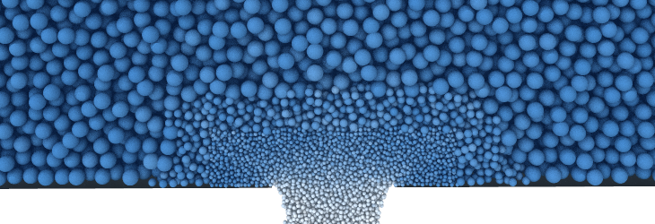 In PreonLab 5.0, the splitting and the subsequent sampling correction is fast enough that it can run in every simulation step (see the article Adaptive Particle-based Aimulation in PreonLab for some details). This eliminates the need to split outside the regions of interest and reduces the overall number of particles. Merging still happens at discrete steps, but in our experience this is acceptable for most applications. We also added the option to use three instead of two particle sizes in a simulation, so that the coarsest particles have four times the diameter of the finest particles. Going from two to three particle levels does not seem like much, but it makes a big difference. If the coarsest particle has two times the diameter of the finest particle, we can reduce the number of particles by up to 8 times (in three dimensions). By adding a third particle size with four times the diameter of the finest particle, this factor increases by almost an order of magnitude to 64.