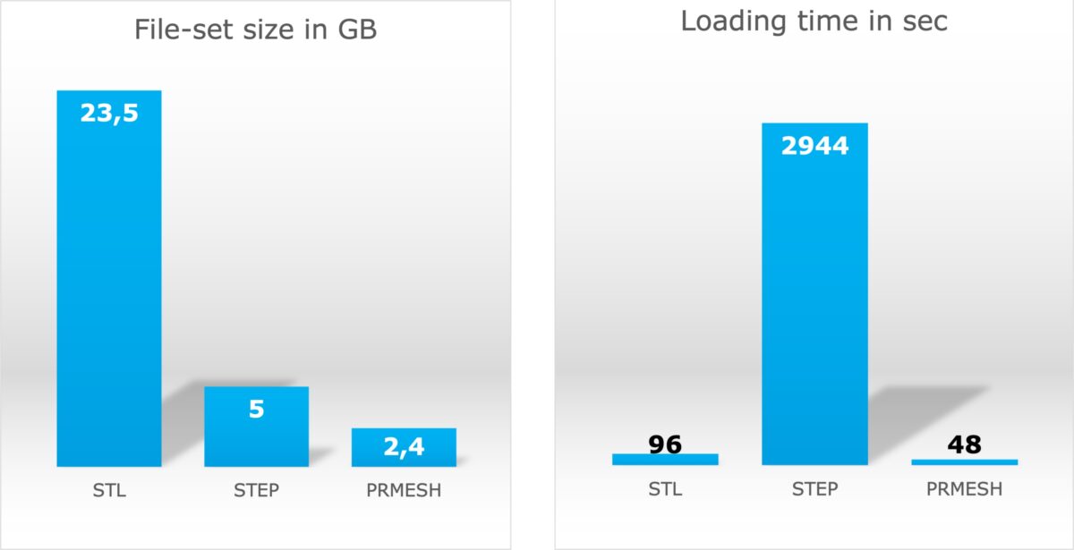 With PreonLab 5.2, we introduce native support of CAD file formats, in particular the popular STEP file format. The STEP file format benefits from a smaller file size compared to conventional mesh-based file formats such as STL due to its representation of the raw geometry data, but suffers from a longer loading time due to the necessary tessellation of the geometry data. Therefore, we have combined different concepts in order to give you the option to convert the imported CAD file into our very own PRMESH file format, which consumes even less hard drive space while loading blazing fast.