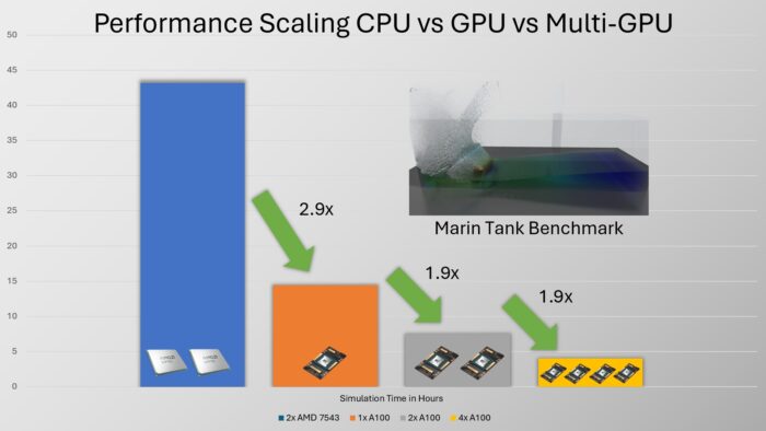 Optimizing our code, fine-tuning data structures, and porting key features first were integral steps in our plan to implement multi-GPU support. Today, we’re pleased to announce that PreonLab 6.1 also features single-node multi-GPU support.