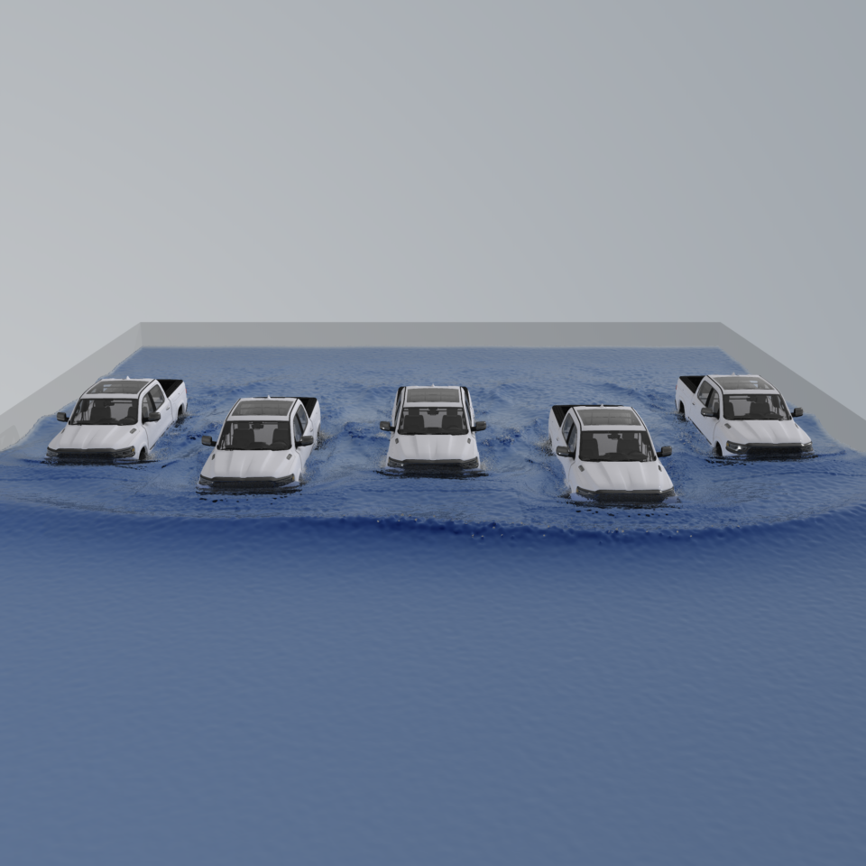 Vehicle water wading has been historically one of the most computationally expensive use cases. With resolved memory constraints and a car suspension model on GPU, this application is one of the clear winners that will benefit the most from new GPU capabilities.