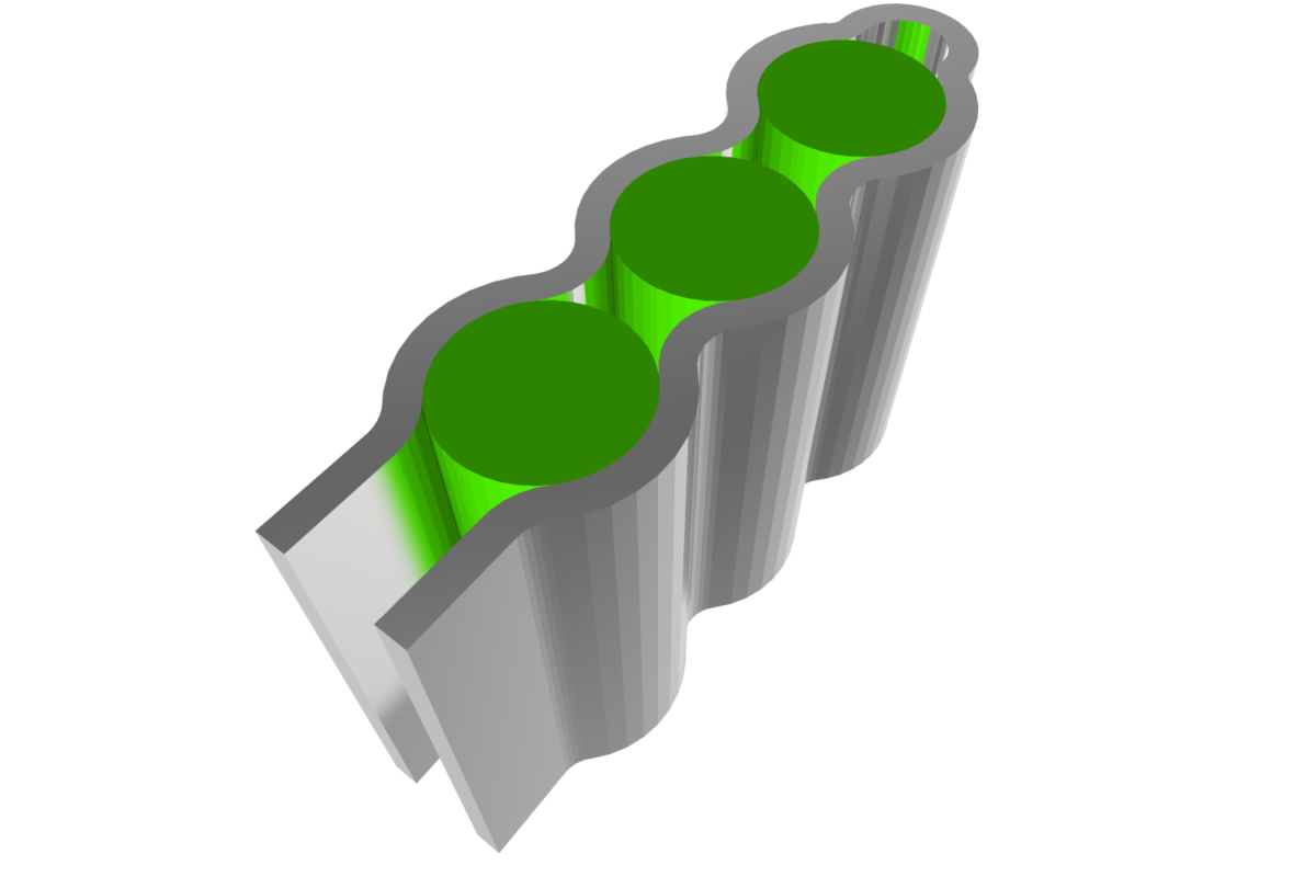 An example use case of a liquid-cooled battery pack is used here to demonstrate the application of PreonLab-TAITherm coupling. Battery cooling is an important thermal aspect in the emerging electric vehicle market. Figure 2 is a representation of a general battery pack that is cooled by a coolant flowing at a certain flow rate through a serpentine ribbon-shaped cooling tube. Each battery emits heat at a specific rate and is set to cool with the coolant interaction on the sides and with air cooling on the top surfaces.