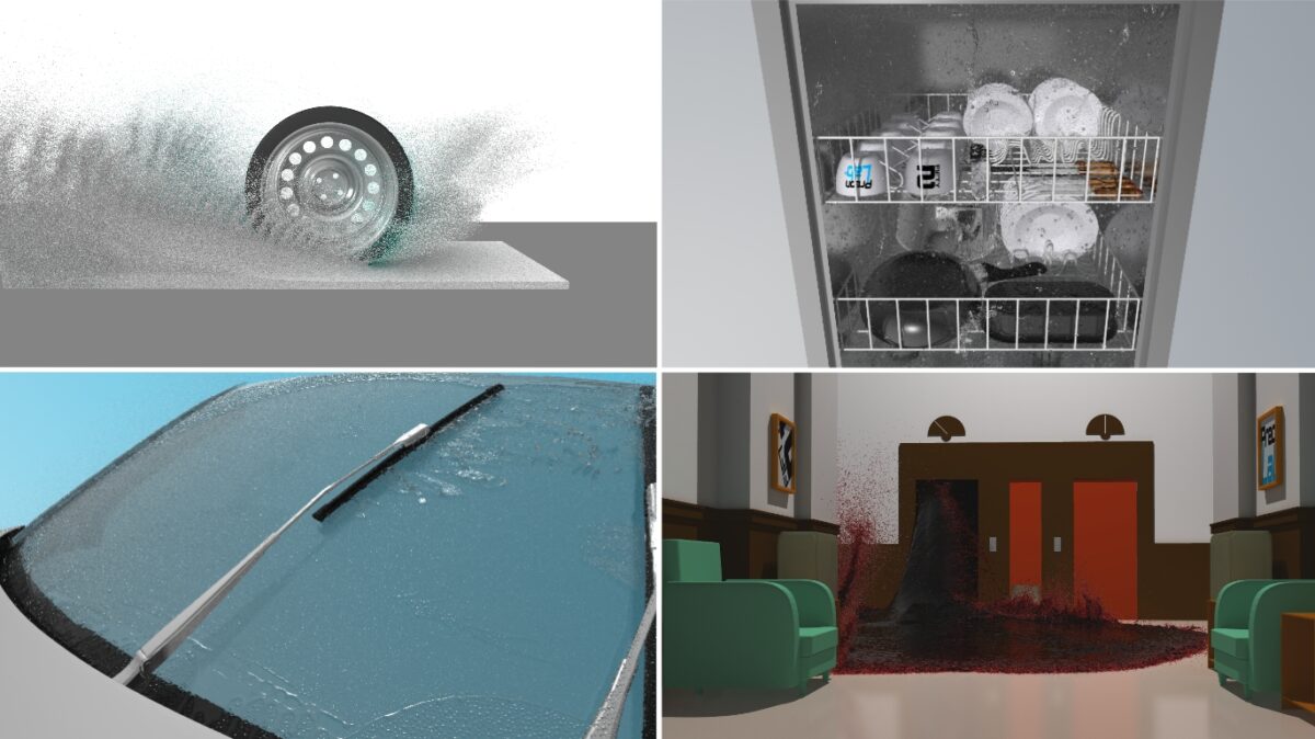 You can showcase the realism of your simulations like the wiper simulation in figure 4 (bottom left) or play around with different settings as we did for a scene from the movie “the Shining”, for a bit of fun (bottom right).