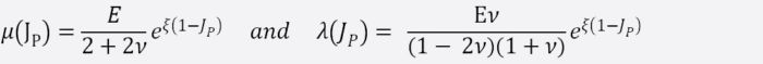 Strain hardening is realized by modifying the Lamé parameters , with an exponential function. As input it takes the plastic deformation Jp= det(Fp) which is scaled by the hardening parameter ξ. In addition, we modify Jp to incorporate a notion of density to allow for accumulation of snow. E controls the overall strength of the stress response, μ the amount of shearing.