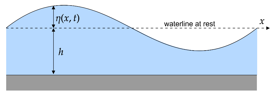 with $g$ and $h$ being the gravitational acceleration and the water depth, respectively.