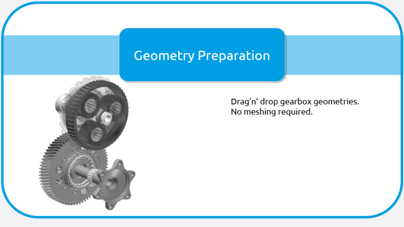 Whether it is automotive transmission, industrial gear systems, aerospace systems or gearboxes in wind turbines, simulating with PreonLab boosts the pace of gearbox development across several industries. Different aspects of gearboxes can be simulated and analyzed with PreonLab: